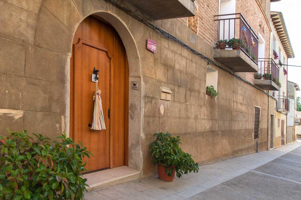 Por lo que respecta al servicio de panadería, tanto aquí como en otros pueblos del Somontano, las vecinas dejan la bolsa del pan colgada en la puerta y es el propio panadero quien les deja el pan que han encargado previamente.
