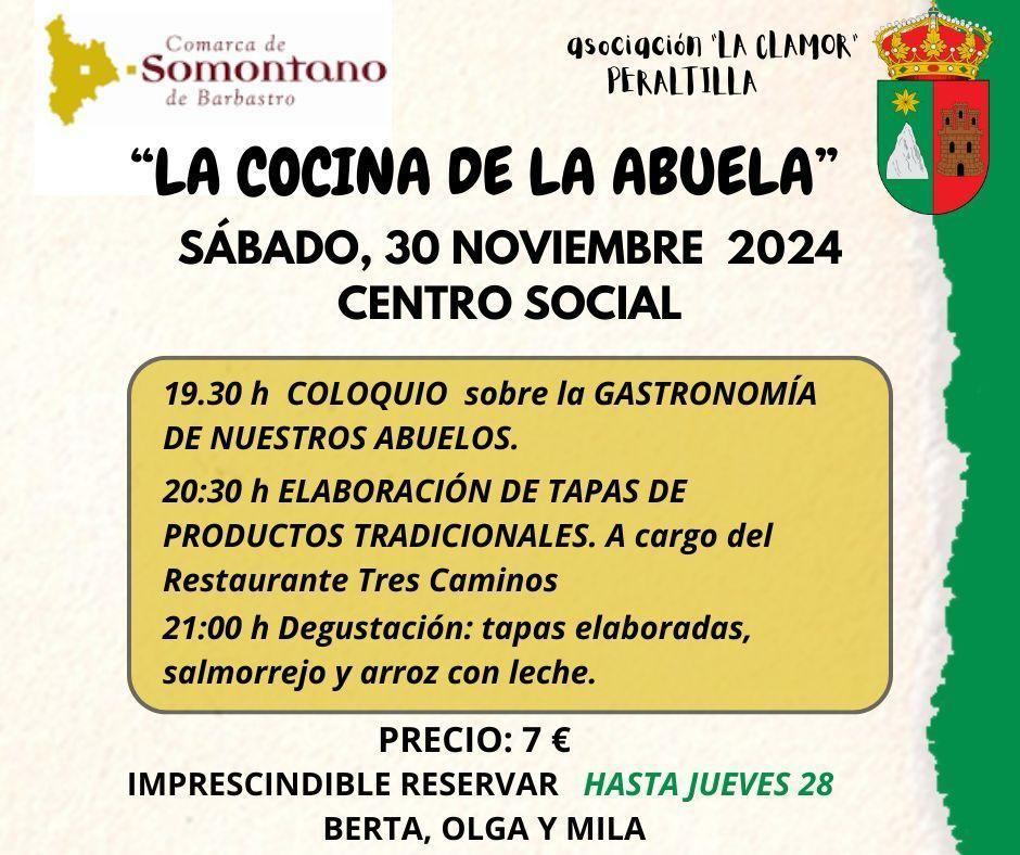 La actividad tendrá lugar el sábado día 30 de noviembre, a partir de las 19:30h en el Centro Social de Peraltilla.